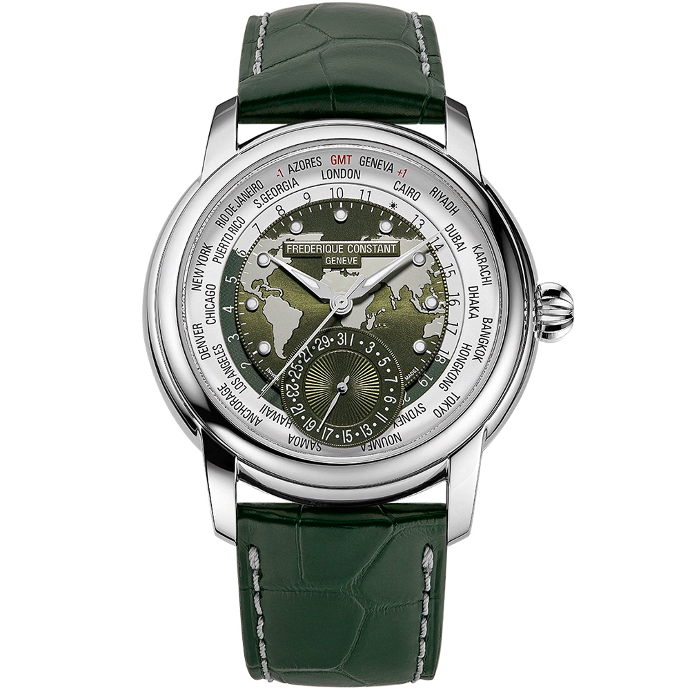 內容簡介 第四維度——經典世界時腕錶的新境界迄今為止,Classic Worldtimer Manufacture 系列已以地球的三大主色調呈現經典風貌:白晝的純白、夜晚的深黑,以及海洋的深藍如今,這一經典系列迎來 全新第四維度——森林綠,推出兩款限量版腕錶,為世界時腕錶增添更豐富的色彩與風格這款腕錶採用 42 毫米不鏽鋼錶殼(限量 718 枚)錶盤上細膩刻畫 世界地圖,搭配日期視窗並配有優雅的深綠色皮革錶帶,展現精緻細膩的裝飾工藝搭載 品牌自製 FC-718 機芯,可清晰顯示刻印於 24 小時轉盤上的 24 個世界城市時區,並設有 指針式日期顯示延續極簡操作理念,所有功能僅需透過單一錶冠便可輕鬆調整將複雜製錶技術與直覺操作完美融合,讓佩戴者隨時掌握全球時間,輕鬆迎接每一次的跨時區探索一枚腕錶,掌控全球 24 個時區——Classics Worldtimer Manufacture 讓世界盡在掌握只需透過單一錶冠 即可輕鬆調整所有時區,無需額外按鈕或複雜操作展現卓越製錶工藝與實用功能的完美結合無論是當下的旅程,還是未來的探索,這款腕錶都將陪伴您踏遍世界每一個角落,成為環遊全球的不二之選!料號:FC-718KWM4H6機芯:自製FC-718自動上鍊機芯,38小時動力儲存,振頻28,800轉,26石功能:時、分、秒、6 點鐘位置指針式日期顯示、世界時間。防水50米錶殼 錶帶:不銹鋼錶殼,直徑42mm、厚度12.15mm防眩處理藍寶石水晶鏡面透視底蓋綠色鱷魚皮錶帶錶盤:帶世界地圖裝飾的錶盤24 個世界城市時區6點鐘日期小錶盤配件:原廠錶盒,原廠手提紙袋,原廠保卡,全球保固2年每款配件樣式依原廠配置◆鑑賞期注意事項:依照消費者保護法規定,線上購物消費者均享有商品到貨十天猶豫期之權益(並非試用期喔)。商品必須是全新狀態(不得有刮傷或拆封試戴),以及附上廠商原付所有附隨文件或資料之完整性(出貨時均有錄影詳列品項),才能享有這項服務喔。如有隨貨附贈品,經拆封使用恕無法辦理退貨。網頁圖片因拍攝關係會與實際商品略有色差,圖片僅供參考,顏色請以實際收到之商品為準。◆售後服務事項:商品於保固期內有故障或需做售後服務維修時(外觀不在保固內),依各品牌商之規定,以維修方式處理,一律需提供原廠保證書由原供應商送回品牌商做售後服務處理追蹤。 超出保固服務範圍或期限者,其維修,收費事宜,依原廠售後服務中心為基準 售後服務中心為基準。