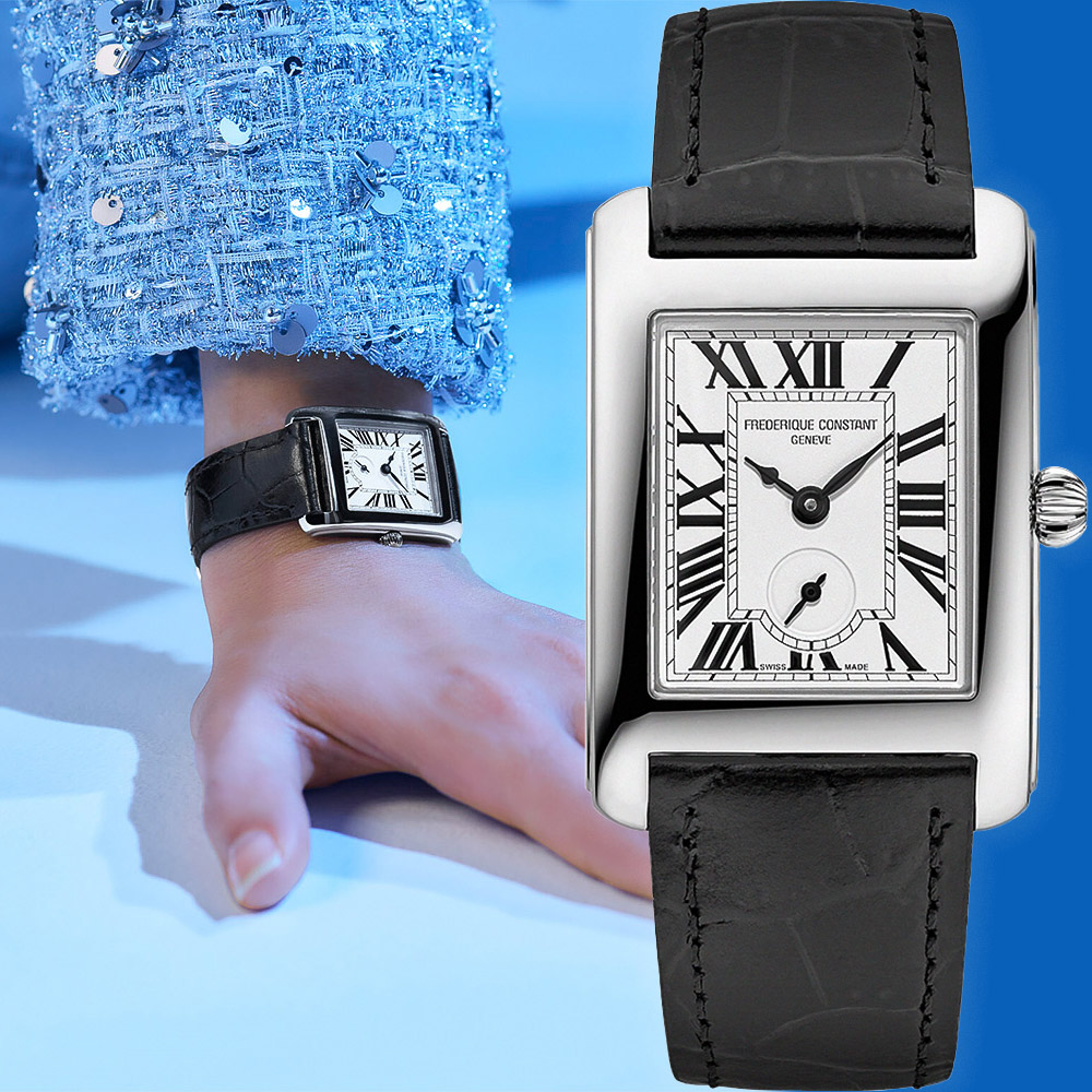 內容簡介 Classics Carrée 風格喚起了 1920 年代和 1930 年代的裝飾藝術精神,採用筆直的線條和精緻的形狀,打破了傳統的圓形。長方形錶殼內設有錶盤,錶盤上也有同樣長方形的分鐘軌道,並在 6 點鐘位置設有獨立小秒針。錶盤以優雅羅馬數字時標、以及洋蔥錶冠,向經典藝術精神致敬。料號:FC-235S2C6機芯 動力 功能:石英機芯時、分、小秒針顯示防水30米錶殼 錶帶:錶殼約25.2 X 27.6mm,不鏽鋼錶殼,鱷魚紋小牛皮錶帶藍寶石水晶鏡面錶盤:6 點鐘位置設有獨立小秒針黑色羅馬數字配件:原廠錶盒,原廠手提紙袋,原廠保卡,全球保固2年每款配件樣式依原廠配置服務:若需事先調整錶帶長度,可於地址欄備註手圍公分數,若有裁下的錶節將一併附上。保固期內有售後服務需求時,客戶需提供原廠保卡與商品予原供應商,由原供應商送回原廠檢查,超出保固範圍或期限者,相關收費事宜依原廠售後服務中心為基準。