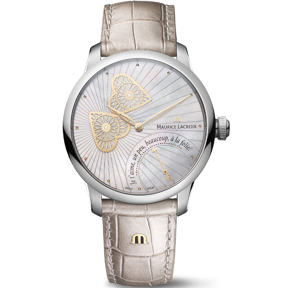 簡介 / | Maurice Lacroix 艾美錶 Masterpiece Embrace 珍珠貝機械女錶 (MP6068-SS001-160-1):原廠公司,自動上鍊 珍珠貝錶盤,小秒針,逆跳日期 藍寶石水晶鏡面,小牛皮錶帶:誠品 |