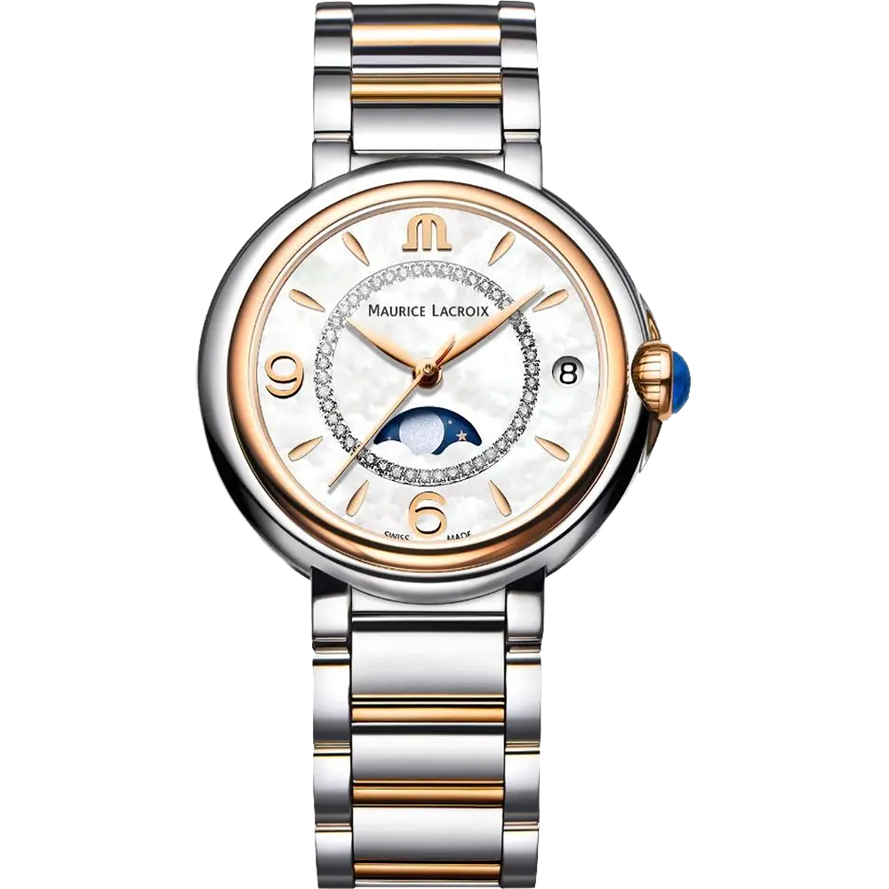 內容簡介 FIABA系列#MoonphaseFiaba系列月相腕錶兼具功能、魅力與格調這款Maurice Lacroix艾美錶全新腕錶具有月相顯示、鑲鑽錶盤,以及豐富的美學細節月亮是女性柔美的象徵。月亮又是對生命的比喻,明暗俱全,與時間同義在鐘錶世界,製錶師一直為月相顯示所吸引,以饒富詩意的方式展現其迷人魅力一如其名,Fiaba系列月相腕錶具有月相顯示,其形如新月,位於6時位置※基本資料※料號:FA1084-PVP13-150-1機芯:石英錶 動力:電池※規格※錶殼:直徑約32mm 錶帶:長約18cm ※顏色※錶盤:珍珠貝 錶帶:銀色系, 玫瑰金色系錶框:銀色系, 玫瑰金色系※材質※錶殼:不鏽鋼錶帶:不鏽鋼鏡面:藍寶石水晶鏡面※其他規格※防水:30米 錶扣:蝴蝶扣配件:原廠精緻錶盒,原廠保證書,保固2年。調整錶帶:可幫您調整手圍長度,請您先依個人習慣以皮尺測量後看幾公分 (但皮帶以及橡膠錶帶材質不建議您事先調整錶帶),於收件地址欄或備註欄後方加註需裁剪之手圍長度。鑑賞期注意事項:依照消費者保護法規定,線上購物消費者均享有商品到貨猶豫期之權益(並非試用期喔),商品必須是全新狀態(不得有刮傷或拆封試戴),並附上所有廠商原隨附文件資料保持完整性(出貨時均有錄影詳列品項),才能享有退換貨服務喔。售後服務事項:商品於保固期內需做售後服務維修時,依各品牌商之規定以維修方式處理,一律需提供原廠保證書由原供應商送回品牌商做售後服務處理追蹤。超出保固服務範圍或期限者,其維修收費事宜,依原廠售後服務中心為基準。