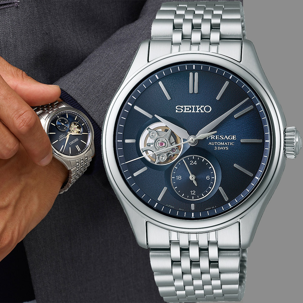 內容簡介 Presage系列,日本傳統「日本藍」錶面開芯錶盤設計,24小時小錶盤雙弧藍寶石水晶,旋入式透視背蓋 此系列錶款的核心為擁有豐富紋理的弧形面盤在視覺上展現了天然紡織品的柔軟觸感,配戴時可感受到日式職人美學 以日本傳統色調 「藍色(Ai-iro)」 為主題藍色自江戶時代(1603–1868)起便深受喜愛,被視為武士的吉祥色彩至明治時期(1868–1912),藍染工藝遍布各地,使外國人將其稱為 「日本藍(Japan Blue)」 錶盤紋理源自日本古老的絲織工藝細緻柔和,如同傳統家飾與服飾中常見的高雅質感,賦予腕錶深厚的文化底蘊搭配弧形指針與立體時標,不僅呼應復古風格更透過 雙弧面藍寶石鏡面 最大化光線反射效果,隨角度展現多層次光影錶帶採用七列金屬鏈節設計,靈感源自 1970 年代復古金屬錶鍊讓腕錶在手腕間具備更高靈活度與舒適度,並隨光線展現細膩閃耀 搭載 Seiko 自製 6R5J 自動上鍊機芯,具備手動上鍊與停秒功能精準度達日差 -15 至 +25 秒,並擁有 72 小時動力儲存,可持續運行達三日,無需頻繁調整開芯設計讓機芯之美可一覽無遺,讓佩戴者隨時欣賞內部精密結構 ※基本資料※料號:6R5J-00C0B(SPB527J1)機芯:機械錶 動力:自動上鍊※規格※錶殼:直徑約40.2mm錶帶:寬約20mm,長約19cm 厚度:約13mm 重量:約139g※顏色※錶盤:藍色系 錶帶:銀色系錶框:銀色系※材質※錶殼:不鏽鋼 錶帶:不鏽鋼鏡面:藍寶石水晶鏡面※其他規格※錶扣:蝴蝶扣 防水:100米配件:原廠精緻錶盒,原廠保證書,原廠保固期3年。調整錶帶:可幫您調整手圍長度,請您先依個人習慣以皮尺測量後看幾公分 (但皮帶以及橡膠錶帶材質不建議您事先調整錶帶),於收件地址欄或備註欄後方加註需裁剪之手圍長度。鑑賞期注意事項:依照消費者保護法規定,線上購物消費者均享有商品到貨猶豫期之權益(並非試用期喔),商品必須是全新狀態(不得有刮傷或拆封試戴),以及附上廠商原付所有隨附文件或資料,維持完整性(出貨時均有錄影詳列品項),才能享有這項服務喔。售後服務事項:商品於保固期內需做售後服務維修時(外觀不在保固內),依各品牌商之規定,以維修方式處理,一律需提供原廠保證書由原供應商送回品牌商做售後服務處理追蹤。 超出保固服務範圍或期限者,其維修,收費事宜,依原廠售後服務中心為基準。