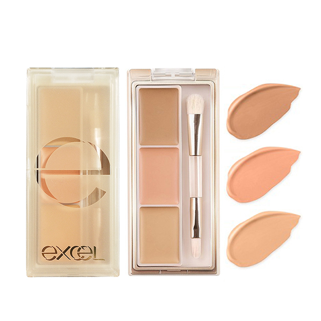 商品描述 | excel 完美修飾遮瑕盤3.5g-平行輸入:超人氣三色遮瑕膏三種顏色可以自由混搭輕鬆遮掉臉上小痘疤.黑眼圈質地服貼自然,不會有生硬感,就像天生的無暇:誠品以「人文、藝術、 |