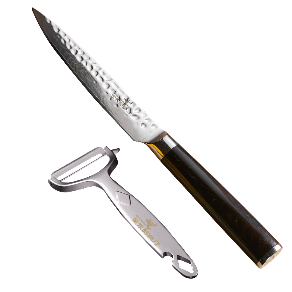 金永利鋼刀 SK13龍紋捶打大馬士革鋼 水果刀12cm (送鋅合金刨刀)