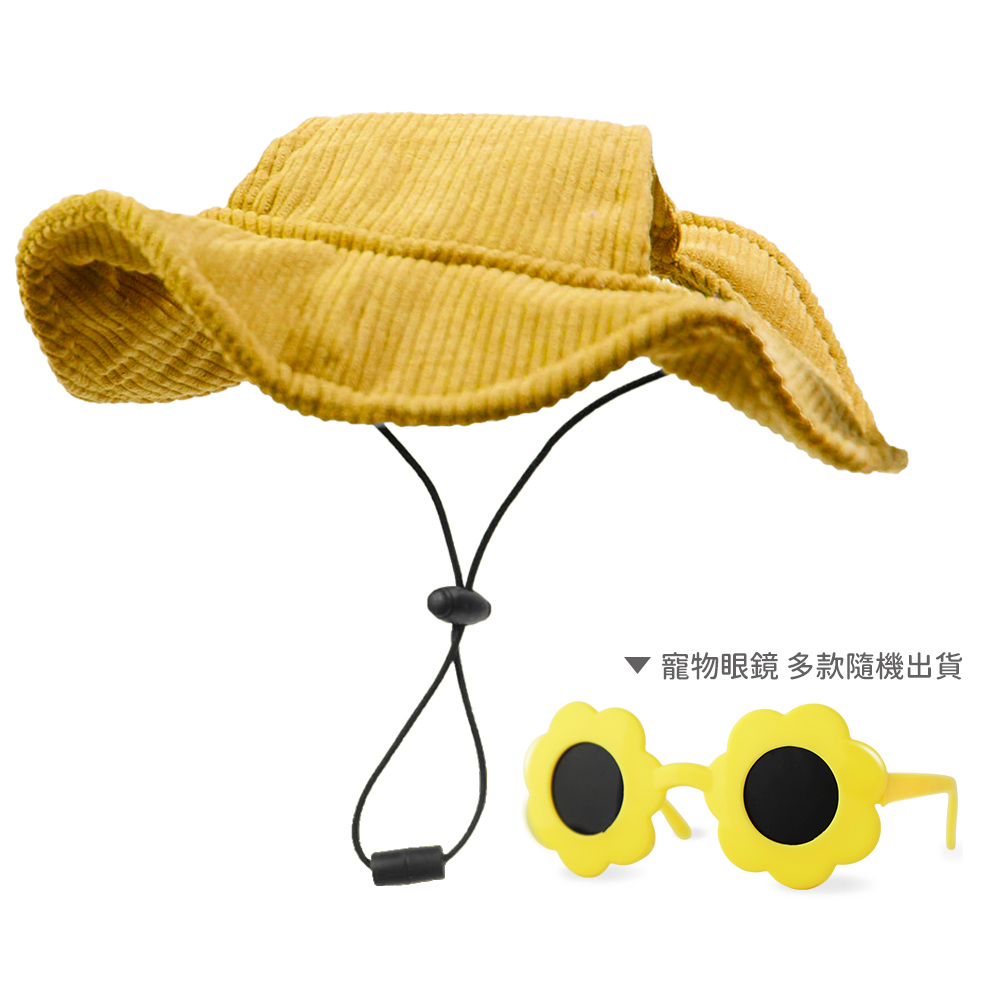 商品名 / | O'Pretty 歐沛媞 毛孩外出必備-Petsall 遮陽露耳漁夫帽(黃)-M 贈毛孩時尚造型眼鏡 |