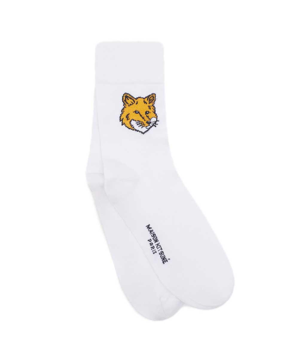 MAISON KITSUNÉ 明亮白狐狸頭LOGO中筒襪 36