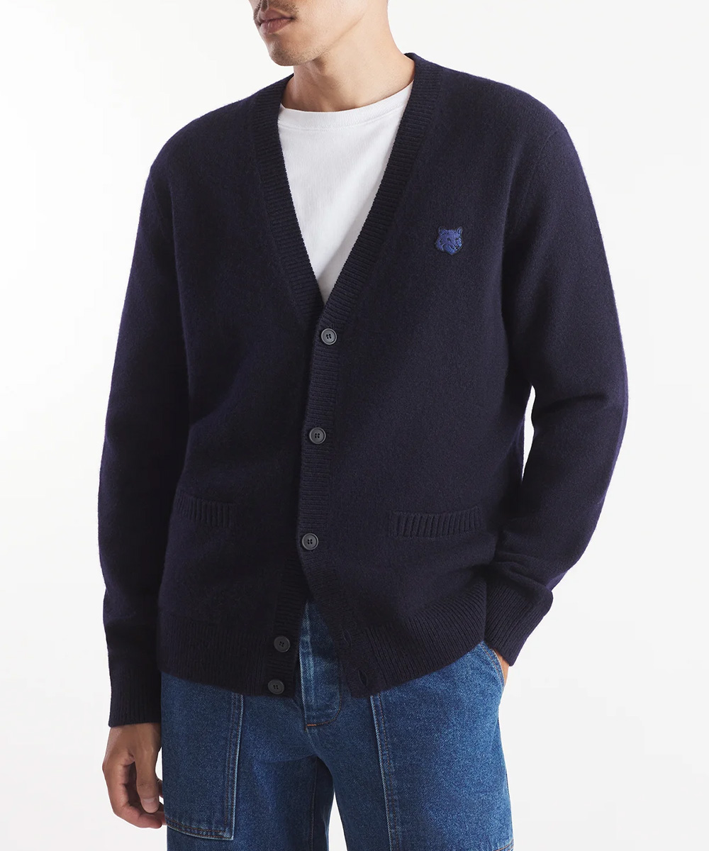 MAISON KITSUNÉ 暮藍色變化狐狸頭經典開襟針織衫_男 M