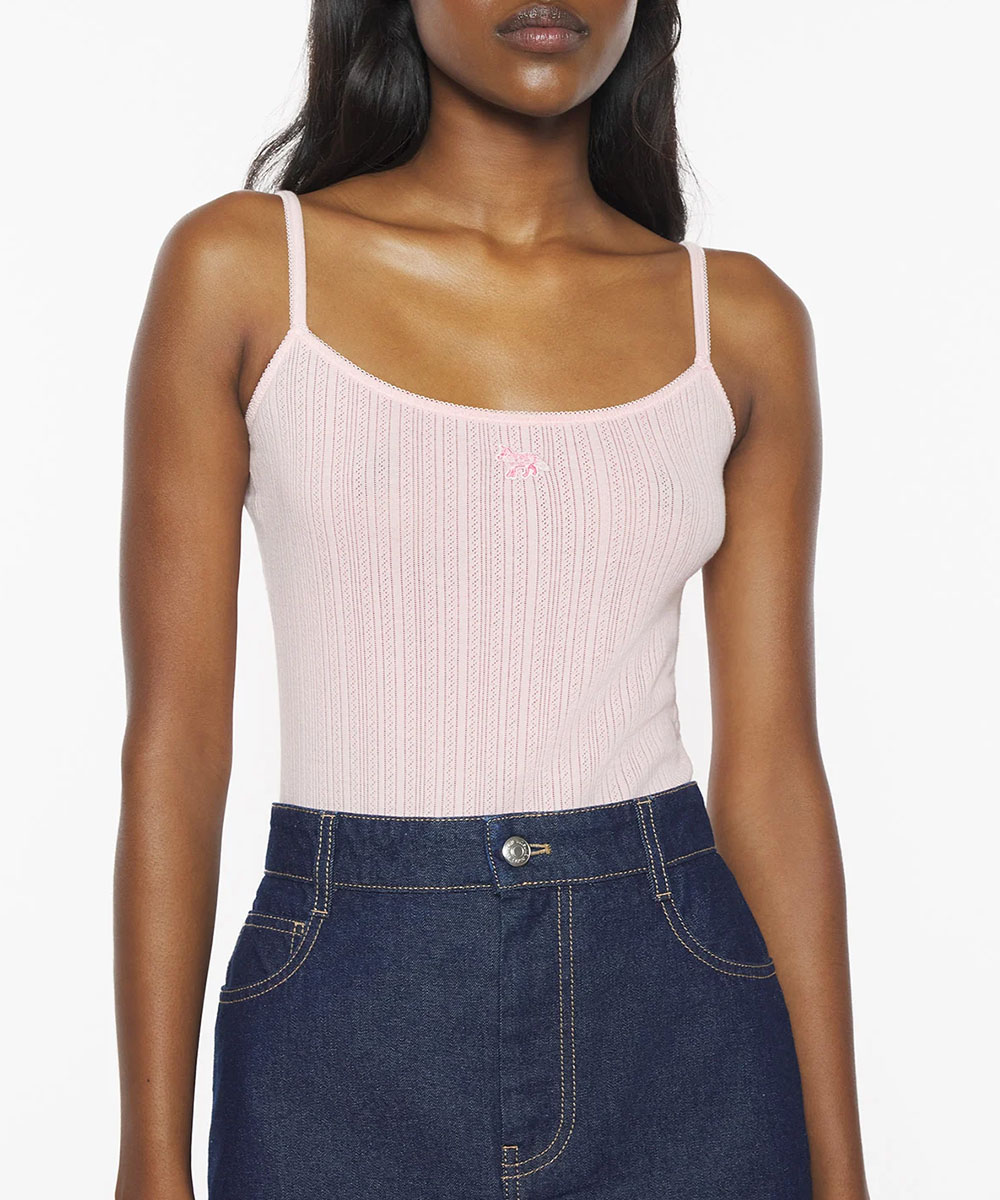 MAISON KITSUNÉ 玫瑰露水粉小狐狸LOGO細肩帶合身背心_女 S