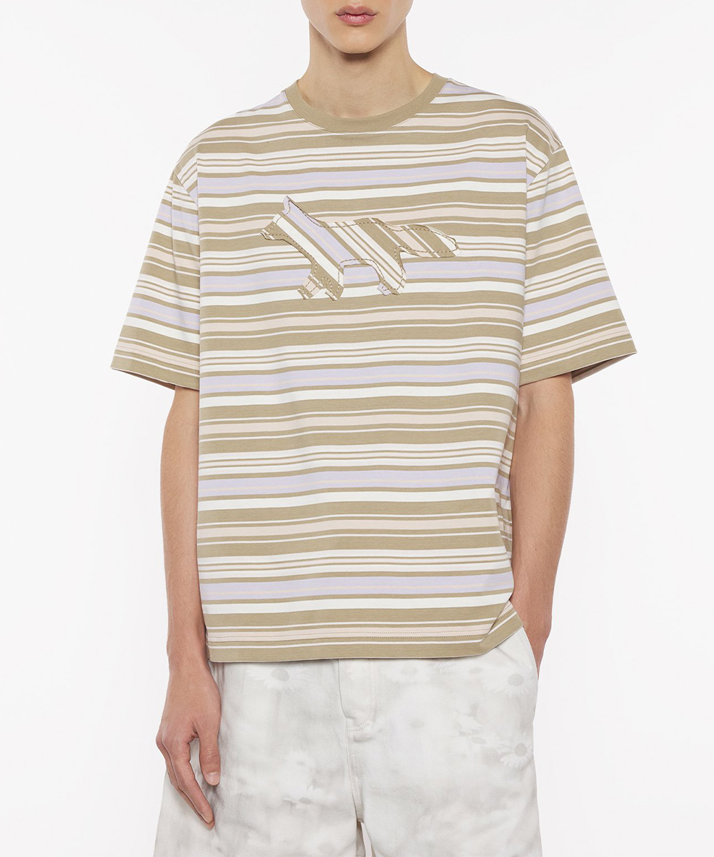 商品名 / | MAISON KITSUNÉ 小荳蔻綠條紋暗影狐狸LOGO寬鬆短TEE_男 中性 M |