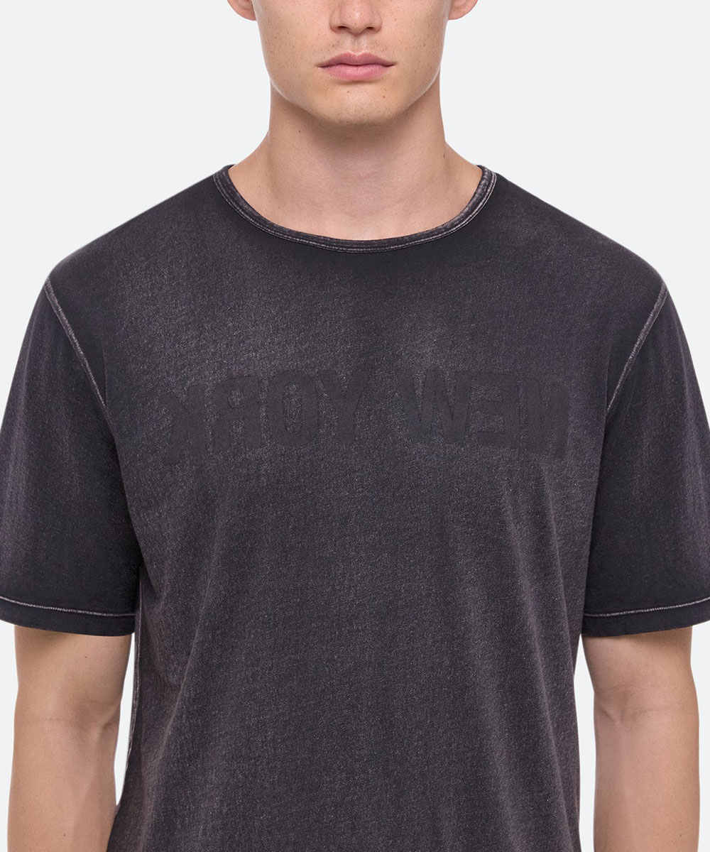 簡介 / | Helmut Lang 標語黑色短袖TEE_男 中性 XS:HelmutLang於1986年創了同名品牌,成了首位將街頭帶入伸展台的先驅,作為90年代極簡主義的代表,除了注入一抹融合街頭感與實驗性 |