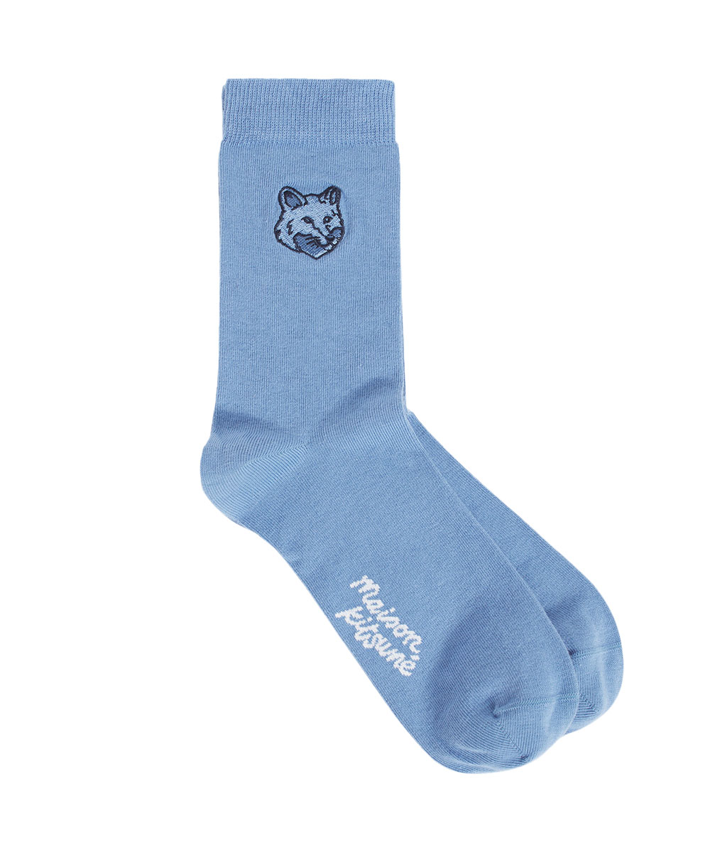 MAISON KITSUNÉ 岩石藍變化狐狸頭LOGO中筒襪 40