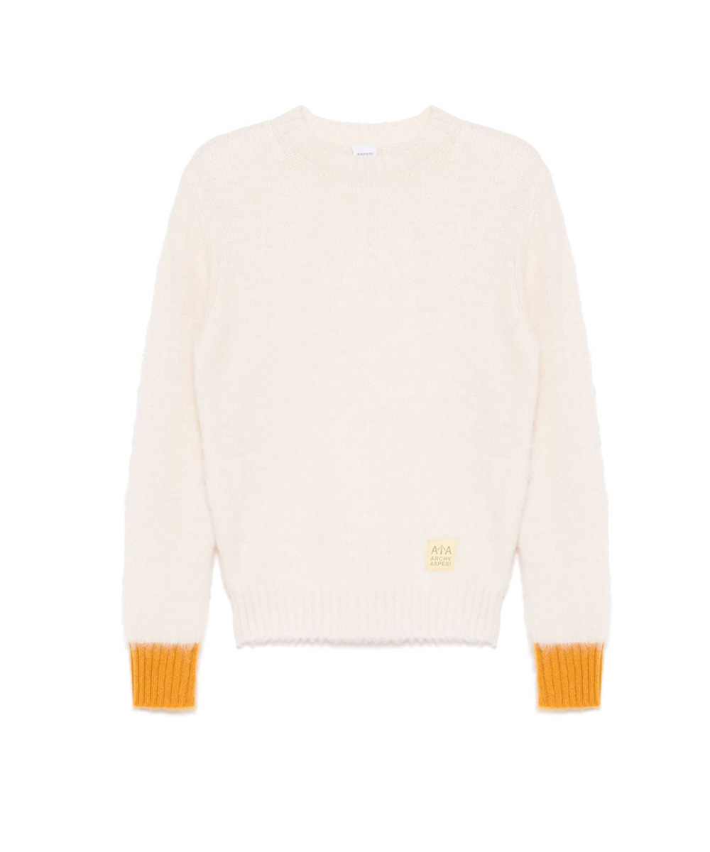 商品名 / | ASPESI 米白色圓領橘色袖口針織上衣_男 中性 52 |