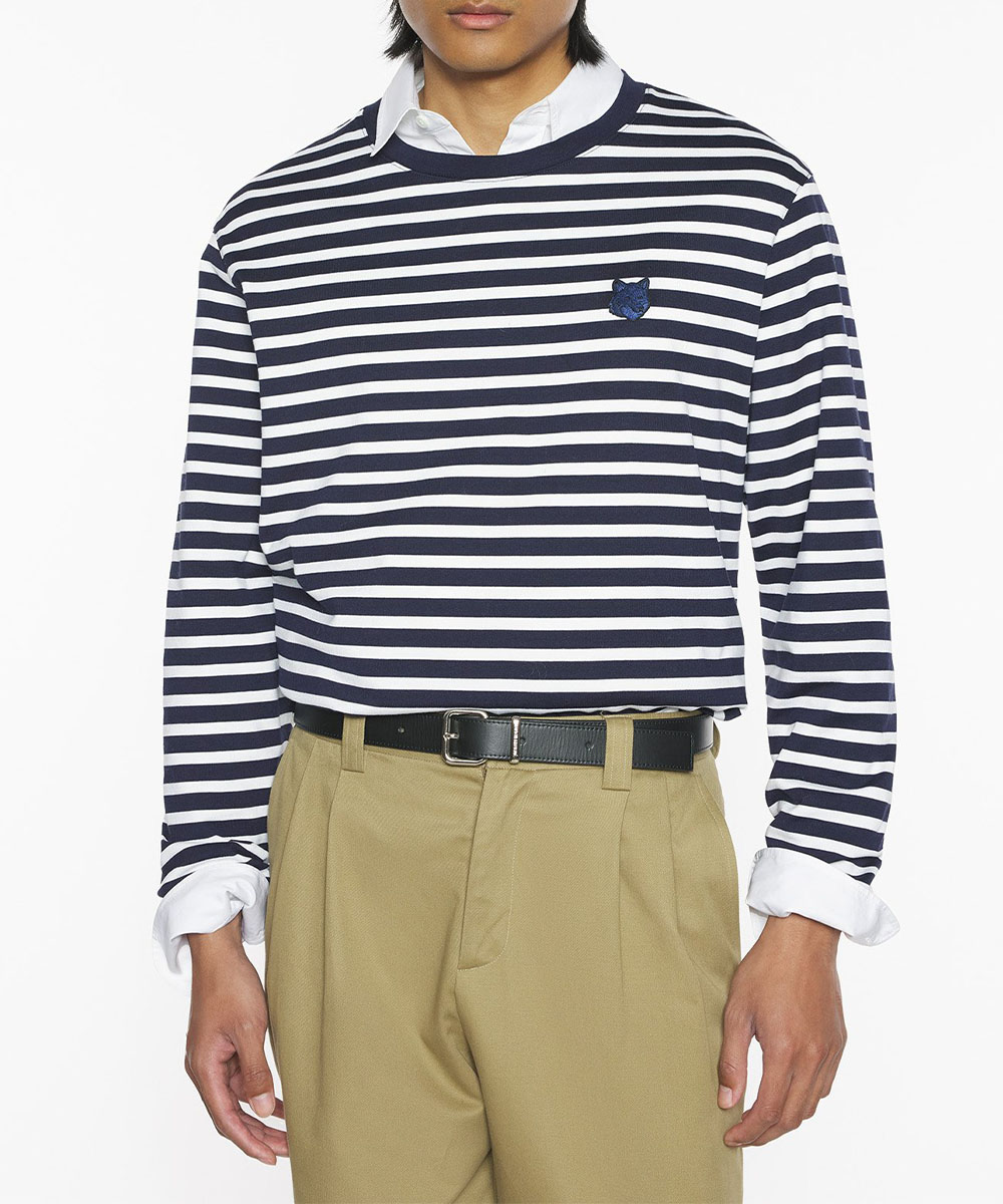 商品名 / | MAISON KITSUNÉ 海軍藍條紋變化狐狸頭LOGO長TEE_男 中性 M |