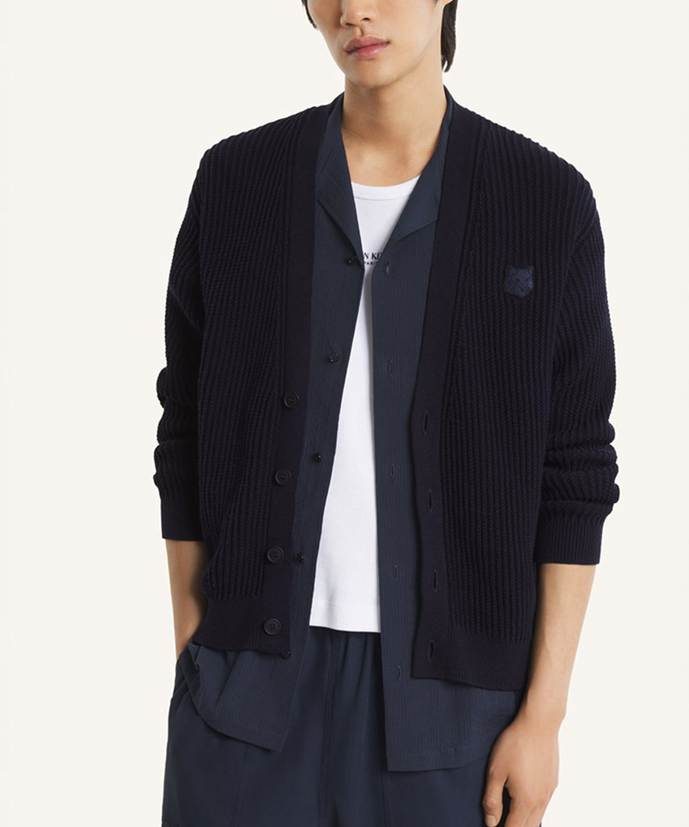 MAISON KITSUNÉ 經典海軍藍變化狐狸頭LOGO棉質羅紋開襟針織衫 中性 男裝 S
