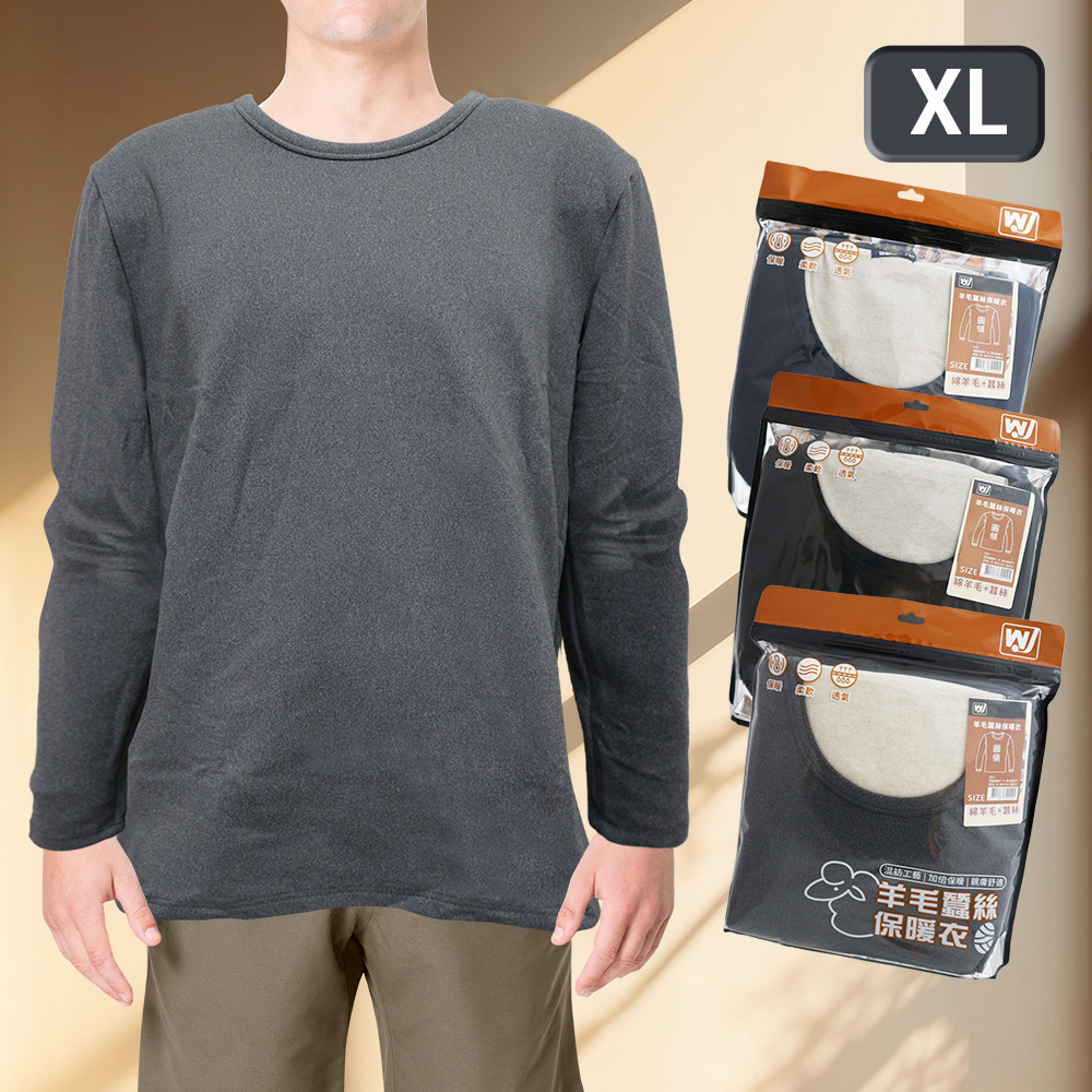 男羊毛蠶絲保暖衣-圓領-6861-2件 XL號 混色銷售隨機出貨