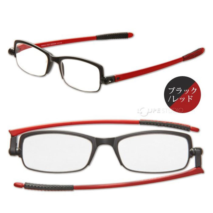 商品名 / 【日本 I.L.K. 依康達】 Flat glass 日本時尚薄型摺疊老花眼鏡 黑紅(BK RD) 350度