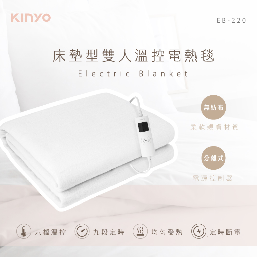 【KINYO】床墊型雙人溫控電熱毯(EB-220)