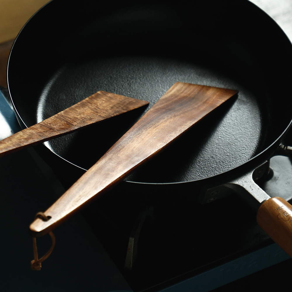 日本霜山 萬用料理三角型柚木鍋鏟-加長款