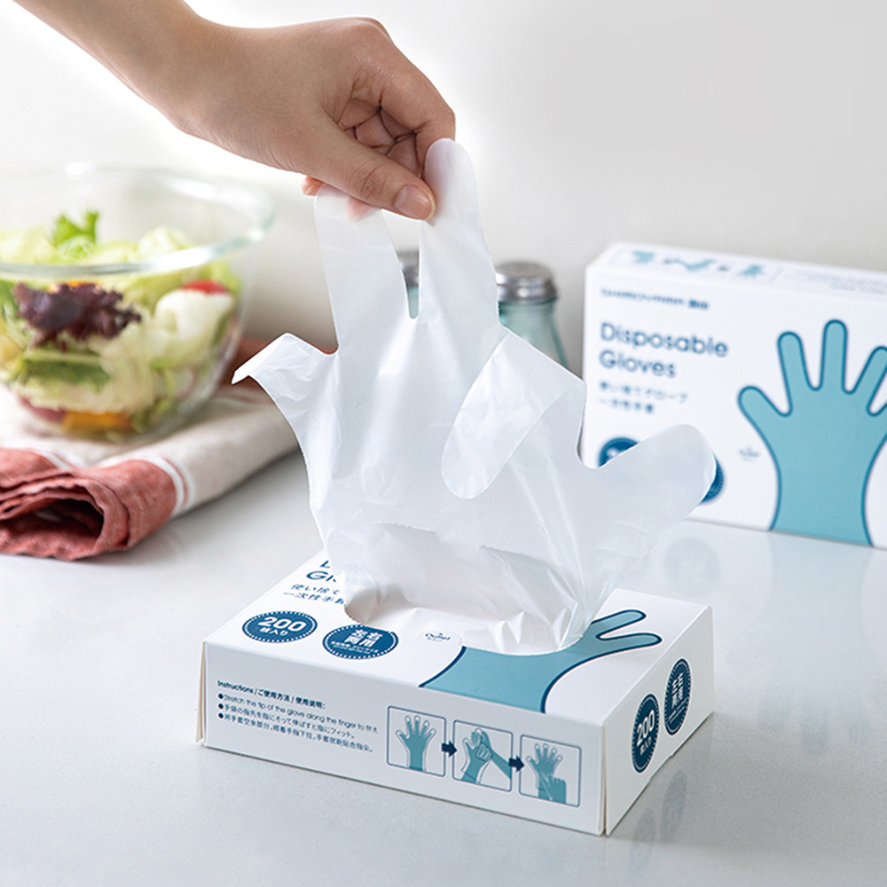 簡介 / | 日本霜山 一次性拋棄式透明手套 懶人清潔手套-200入:.材質耐用韌性十足,牢固不易破.貼合雙手,質感柔軟,不易脫落.密封性佳,隔絕油污及染上異味.可直接觸控使用手機 |