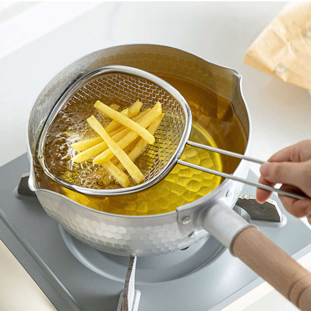 商品描述 | 日本霜山 304不鏽鋼濾油瀝水網-大款 粗網(瀝油網):.304不鏽鋼製,安心接觸食材.均勻網孔,可快速瀝油及瀝水.鵝蛋型網面設計,貼合鍋身輕鬆瀝水.邊緣光滑無稜角,可扣 |