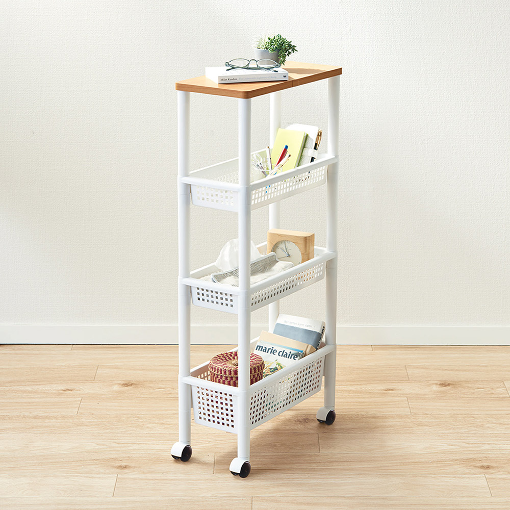 簡介 / | 日本天馬 移動式木質頂板窄型四層收納架:.採用PP材質,美觀耐用且易清潔.鏤空置物籃,保持通風乾爽不積水.萬向輪設計,使移動、清潔不費力.底層深型置物籃,可滿足各 |