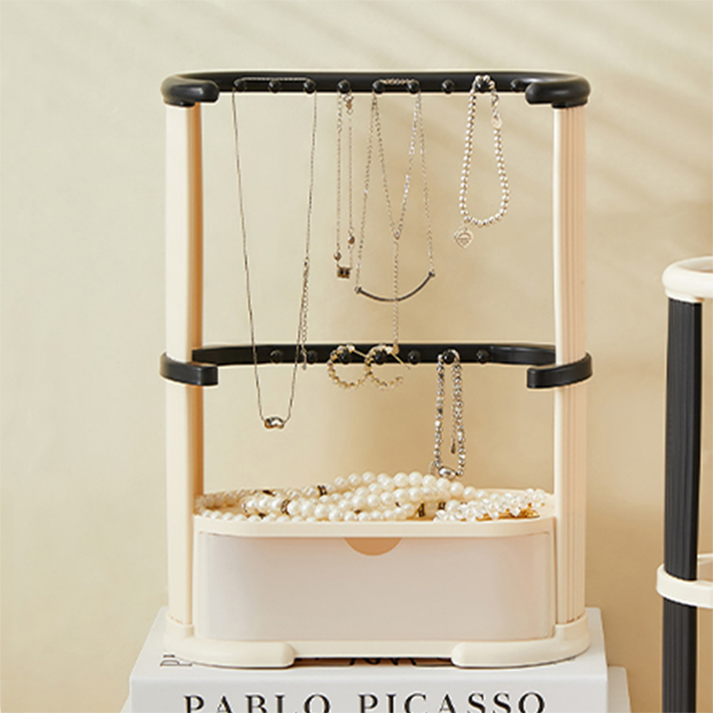 簡介 / | 英國FGODA 可掛式飾品首飾收納架(附抽屜) 奶油色:.防滑珠設計,懸掛飾品不滑落.拆卸式抽屜,可取出清洗內部.雙層吊掛設計,手鍊、項鍊收納不纏繞.簡約設計,融入各種 |