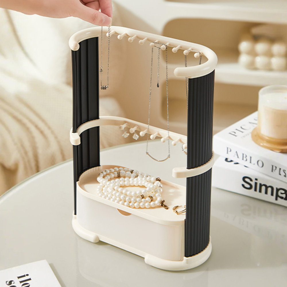 簡介 / | 英國FGODA 可掛式飾品首飾收納架(附抽屜) 黑色:.防滑珠設計,懸掛飾品不滑落.拆卸式抽屜,可取出清洗內部.雙層吊掛設計,手鍊、項鍊收納不纏繞.簡約設計,融入各種居 |