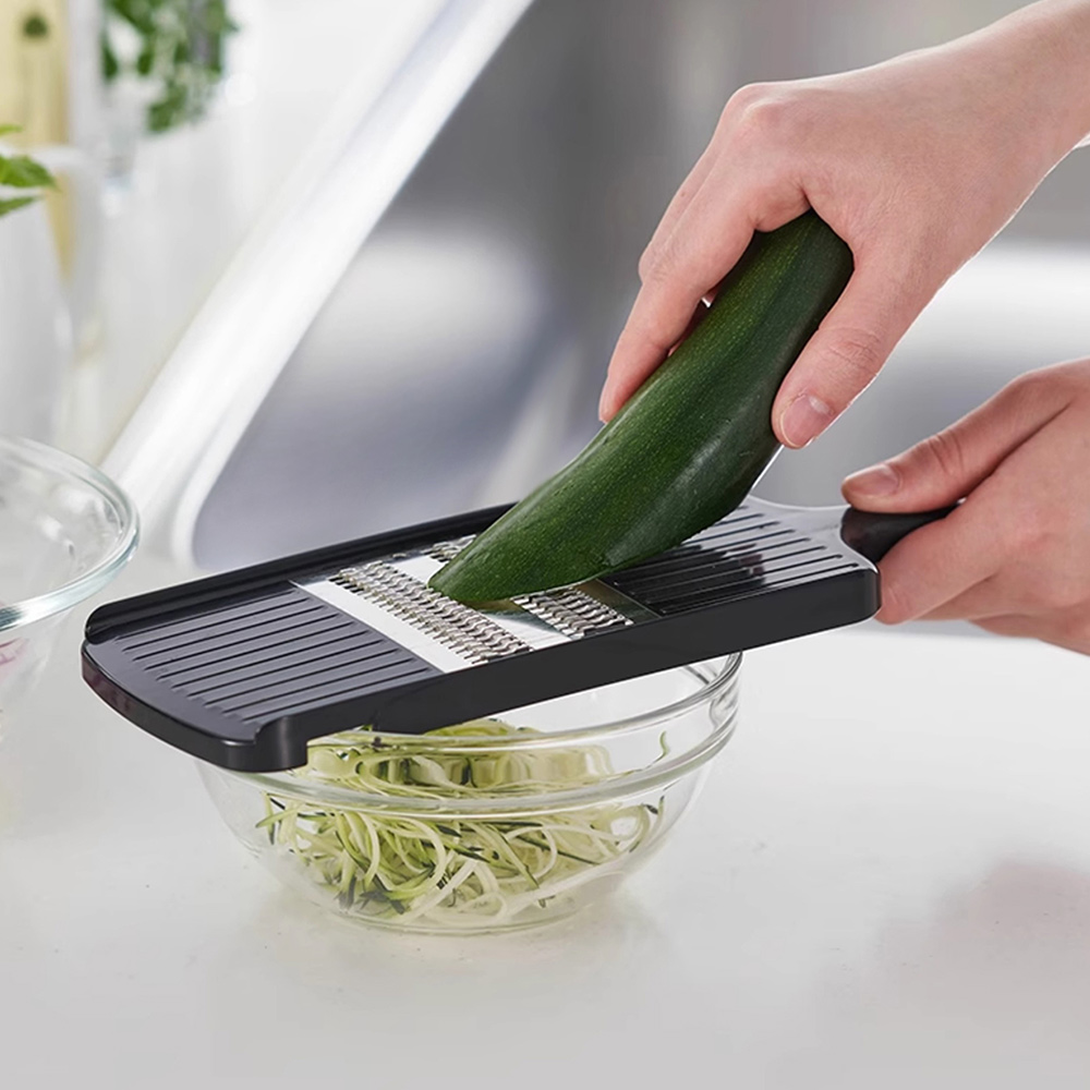 | 簡介 / | 日本霜山 日本製雙向削菜板 刨絲器(1.2mm方形刀口款 附護手器):.雙向刀刃讓刨絲更快速,提升備料效率.方形刀口設計,輕鬆刨絲還原手切口感.可扣住容器邊緣,刨削穩定不 |