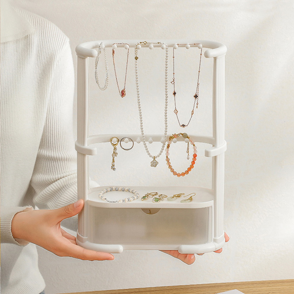 梵特 三層飾品收納架 首飾架 展示架(附抽屜) 白色