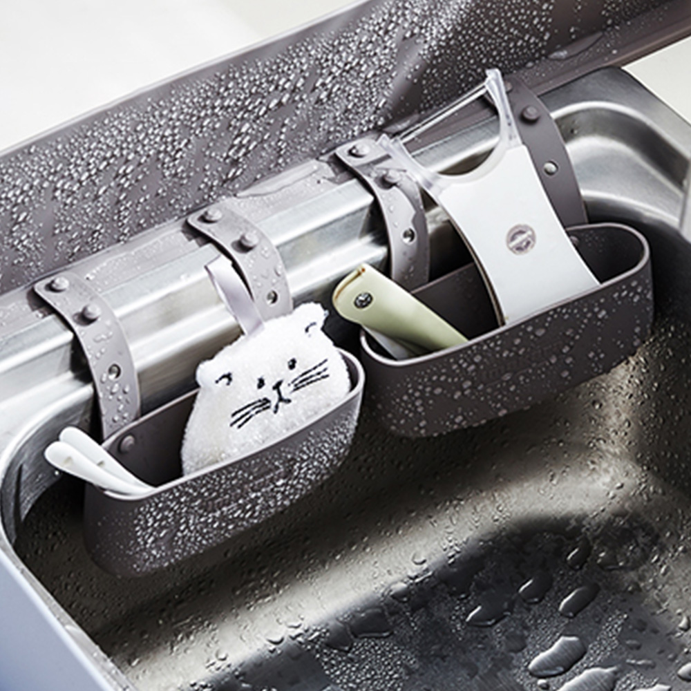 商品名 / | 日本Imakara 廚房水槽用矽膠瀝水收納掛籃-3入 灰 |