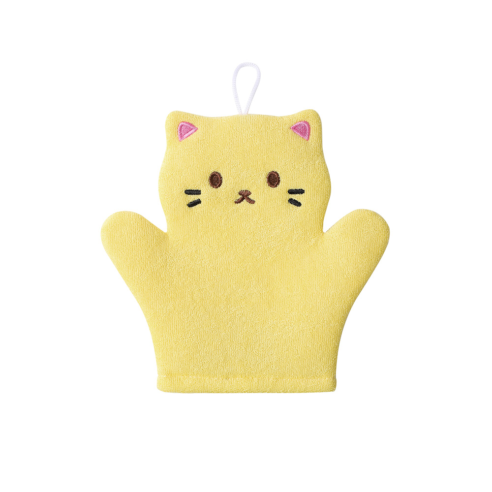 商品名 / | 日本Imakara 可愛動物造型搓澡手套 幼兒用沐浴手套-3入 黃貓 |