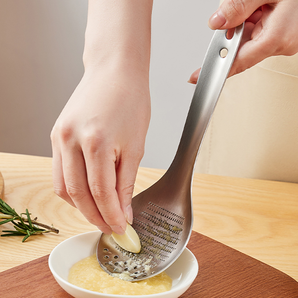 商品名 / | 日本Imakara 多功能勺型不鏽鋼薑蒜研磨器 去核磨泥器 瀝汁漏勺 |