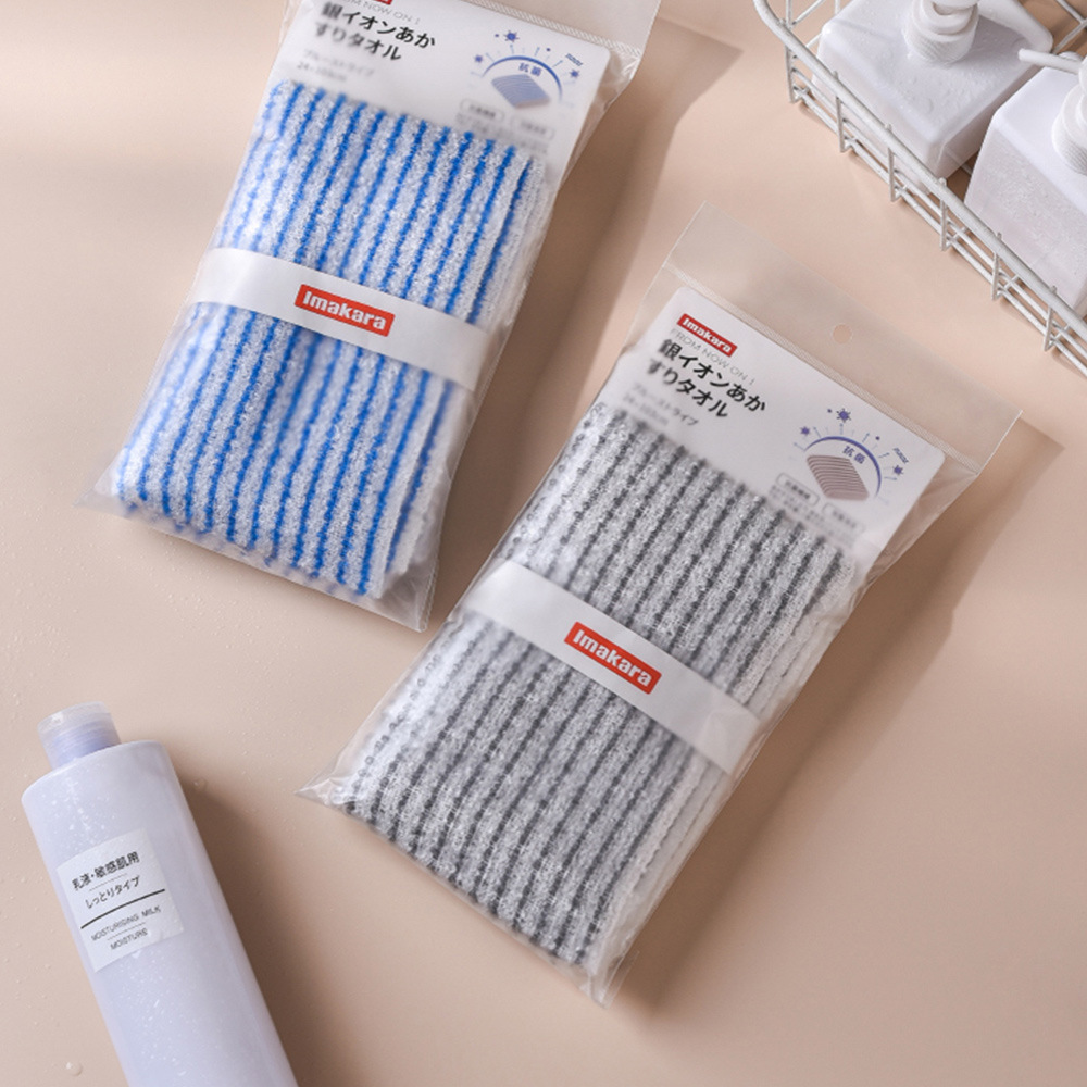 日本Imakara 條紋風銀離子抗菌去角質加厚搓澡巾-3入 灰白