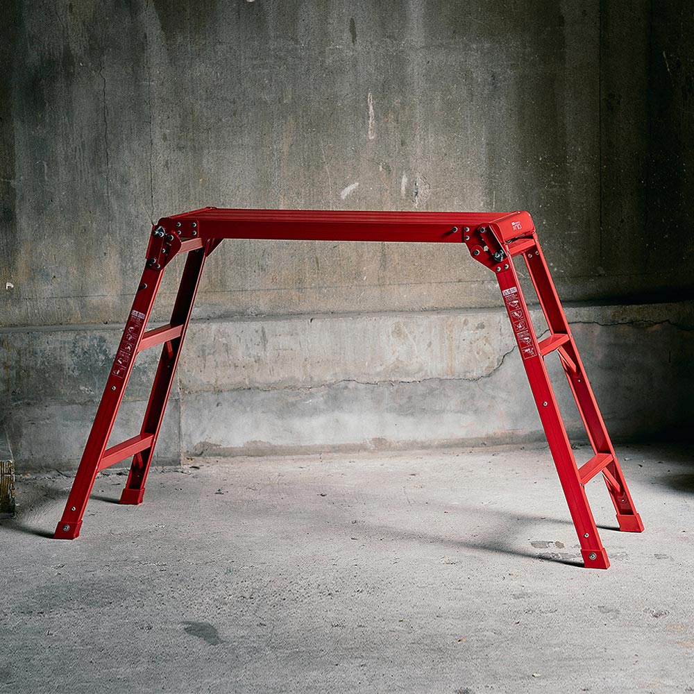 日本天馬 輕量鋁合金折疊工作平台 洗車梯(三層) 磚紅