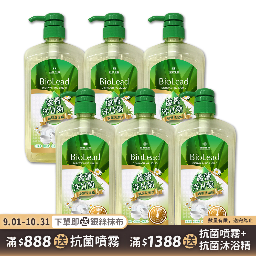 商品描述 | 《台塑生醫》BioLead蘆薈洋甘菊碗盤洗潔精1000g (7瓶 組):1.溫和潔淨,精選洋甘菊萃取液,雙手不緊繃。2.貼心呵護,嚴選蘆薈萃取液,低刺激不傷手。3.安全保證,無磷、無螢光劑 |