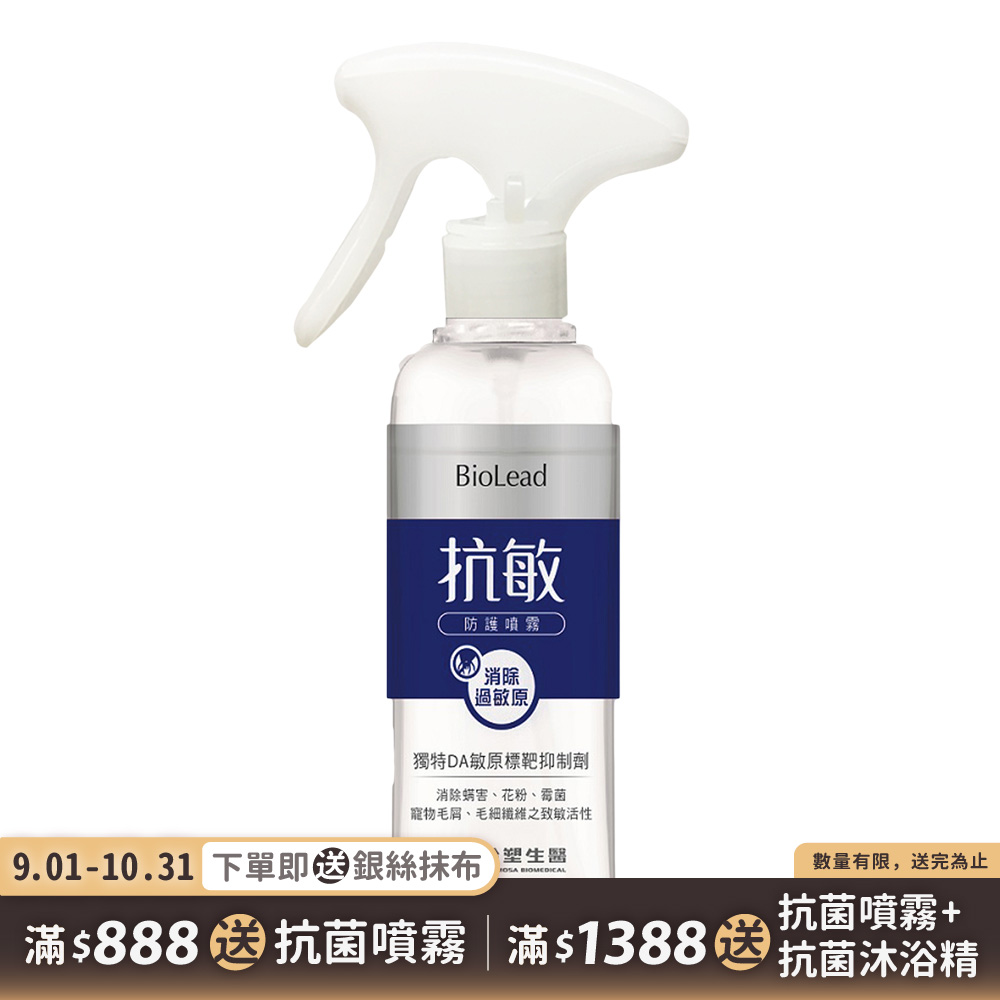 商品描述 | 《台塑生醫》BioLead抗敏防護噴霧255g:獨特DA敏原標靶抑制成分消除過敏原針對各類織品噴用使用最便利衣物、床墊、枕頭、沙發、窗簾、地毯等均可噴用,兼具抗敏、防敏雙重 |