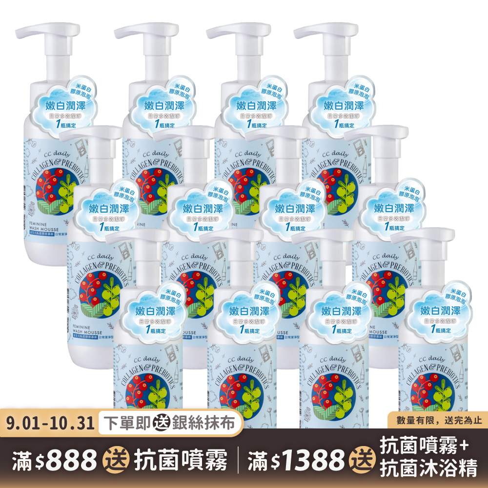 內容簡介 商品規格:CC daily益生元私密膠原慕斯(日常潔淨型)200g*12入淨重:200g用途:清潔身體使用方法:先將肌膚淋濕後,按壓出適量幕絲泡泡,輕搓洗於私密肌外陰部後,再以清水沖淨即可。全成分:Aqua, Lauramidopropyl Betaine, Propylene Glycol, Disodium Laureth Sulfosuccinate, PEG-80 Glyceryl Cocoate, Sodium Chloride, Lactic Acid, Phenoxyethanol, Polysorbate 20, Decyl Glucoside, Hydroxyacetophenone, Fragrance, Chlorhexidine Diundecylenate, Niacinamide, Disodium EDTA, Sodium Lactate, o-Cymen-5-ol, Butylene Glycol, Sodium Cocoyl Collagen Amino Acids, Glycolipids, Alpha-Glucan Oligosaccharide, Lactobacillus Soymilk Ferment Filtrate, Glycerin, Oryza Sativa (Rice) Extract, Saccharomyces Persimmon Fruit Juice Ferment Extract, Actinidia Chinensis (Kiwi) Fruit Water, Hexylene Glycol, Caprylyl Glycol, Capryloyl Glycine, Pentylene Glycol, Vaccinium Macrocarpon (Cranberry) Fruit Extract, Alcohol, Sophora Flavescens Root Extract, Xylitylglucoside, Terminalia Ferdinandiana Fruit Extract, Leuconostoc Ferment Filtrate, Ascorbic Acid, Superoxide Dismutase, Soybean PeroxidasepH值:3.8±0.5注意事項:僅供外部清潔,請避免使用於陰道內部,若有不適請暫停使用。若不慎誤食,請送醫診治。本品因含植物萃取成分,產品色澤、氣味可能會依溫濕度有些微變化,實屬正常現象,建議開封後於六個月內使用完畢。製造日期 :標示於瓶身(月 日 西元年)保存期限 :三年保存方法: 請放置於陰涼處,勿讓陽光直接照射。製造業者名稱:台塑生醫科技股份有限公司製造業者地址:臺北市內湖區南京東路六段380號9樓之一客服專線:0800-211-168原產地:台灣販售商廠商名稱: 灝翎國際有限公司販售商地址:桃園市中壢區龍昌路180巷20號販售商電話號碼:03-4564488販售商統一編號:80718835