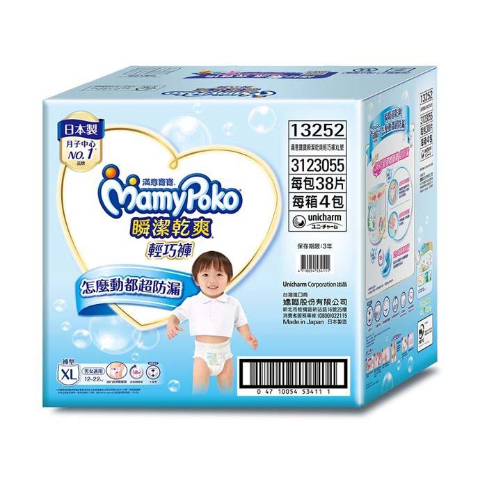 | 商品描述 | 滿意寶寶 瞬潔乾爽輕巧褲(XL)152片 箱:新瞬潔乾爽波紋層,分散吸收超彈力腰腿圍,合身防漏好安心腰圍透氣孔,2倍透氣UP一拉就穿上幫寶寶換穿不再像作戰男女寶寶都適用:誠 |