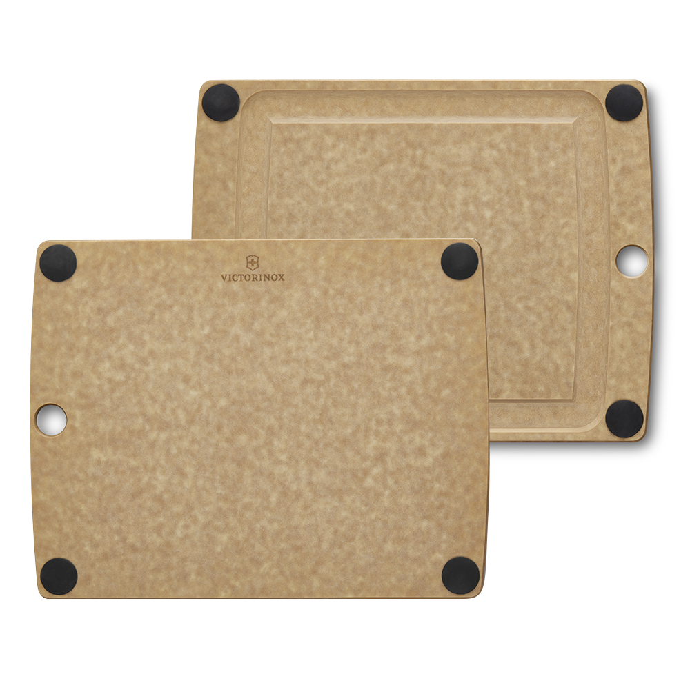 內容簡介 VICTORINOX 瑞士維氏 All In One砧板 - 29.2x22.8(中)棕色 Victorinox 砧板系列的核心價值是不影響產品功能或風格並可持續性發展。此系列由既耐用且優雅的紙質複合材料製成,包括砧板和砧板架,以及由天然成分製成的保護蠟。 不傷刀刃的砧板附可拆式橡膠墊由於其堅固的結構,每件作品都適用於洗碗機清洗,耐熱溫度可達175C 350F 。材質輕巧並具有自然彈力,這意味著不傷刀具和鍋具。此系列有棕色或黑色可供選擇,這是任何風格的環保廚房的完美配置。 時尚、環保的多合一砧板令日常廚房工作變得更輕鬆愉快。這款砧板採用紙複合物料製造,纖巧高雅,而且非常耐用。表面不傷刀刃,耐熱 175°C 350°F,從準備飯菜時切食材至晚餐時上菜皆可使用。方便的凹槽確保您烹飪時保持清潔。讓您的料理更上一層樓。 Raw Material 原材料 採用Richlite出品的複合紙材料製成,而Richlite的紙複合材料成份是以紙及樹脂合成。製法是以再 生纖維製成紙,層疊加壓在一起,並加入食品安全級樹脂而製成。表面的紋理是來自物料的自然 變化而產生。此材料已在國際商業廚房中使用了超過 75 年。 Sustainability 可持續性Victorinox 瑞士維氏一直高度重視環境保護和可持續發展,精心挑選合作夥伴及物料供應商。砧板 系列的成品及原料均通過NSF及FSC認證,並獲得GREENGUARD認證。 Product of Origin 產地 所有砧板由原料到成品均是100%出產自美國,由經驗豐富及創意無限的Epicurean團隊精心打造 而成。具有18年生產優質砧板的實力,其質量絕對是信心保證。 • Competitive Pricing 有競爭力的價格 − 在業界中公認價廉物美的瑞士品牌。