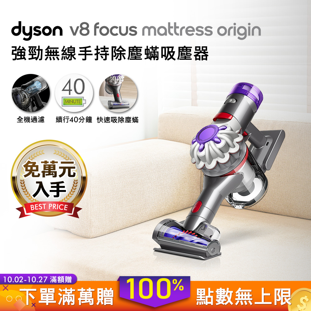 商品描述 | 【限時下殺】Dyson戴森 V8 Focus Mattress Origin HH15 無線除塵蟎手持吸塵器:入門首選免萬必敗強勁吸力,40分鐘續航力全機過濾系統,排出乾淨空氣:誠品以「人文、藝術、 |