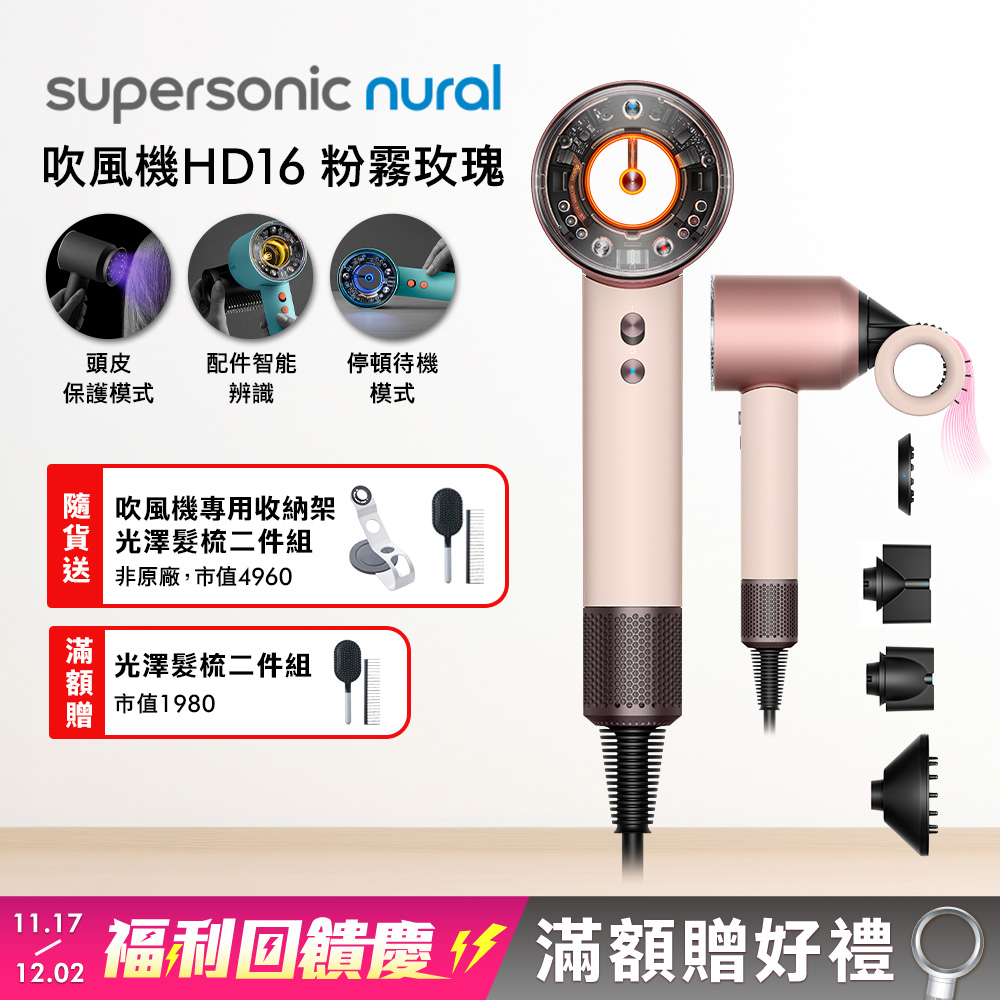 | 簡介 / | 【福利回饋慶】Dyson戴森 Supersonic Nural HD16 吹風機 粉霧玫瑰(贈收納架+光澤雙梳*2):★Nural™感測器系統DysonSupersonic™吹風機新增智能科技。Nural™感測器系統能 |