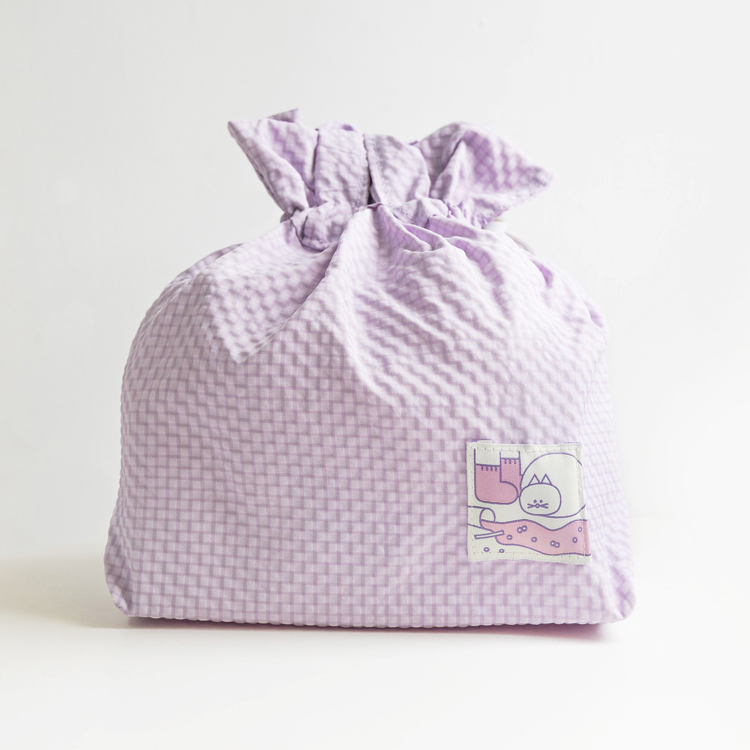 特殊泡泡格紋布精心縫製,質感獨特耐用,搭配束口設計,安心又可愛。