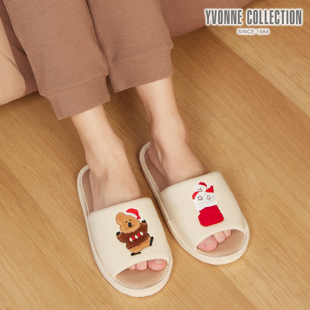 YVONNE COLLECTION DINOTAENG|冬日開口室內拖鞋-象牙白L