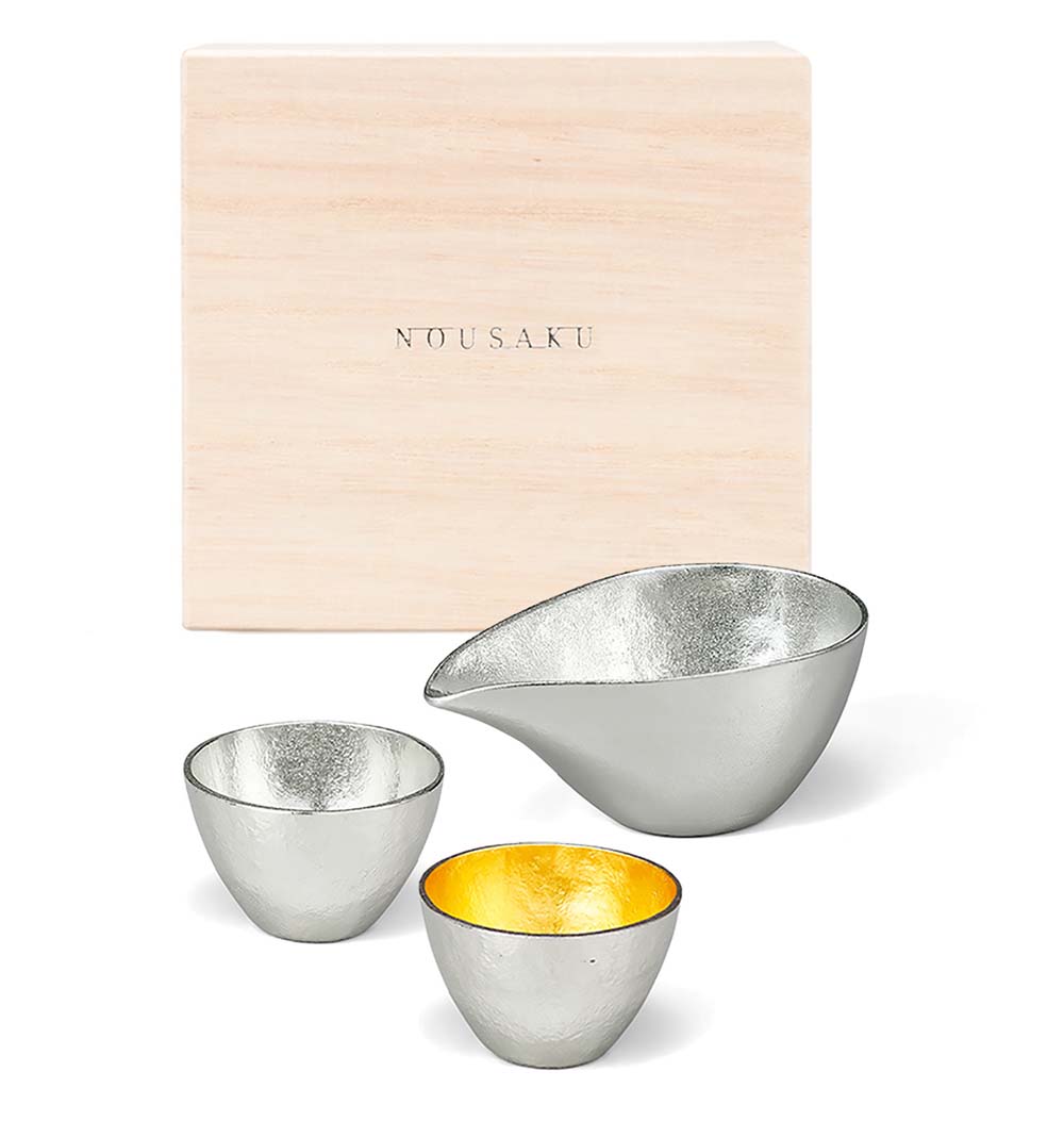 簡介 / | 能作 NOUSAKU 清酒具桐木禮盒(片口盅M+清酒對杯):這套清酒杯組合是純錫製片口盅-M,搭配純錫、金箔的清酒杯組成。自古以來錫器有「放入錫器的水不易腐壞」,或是「能去除 |