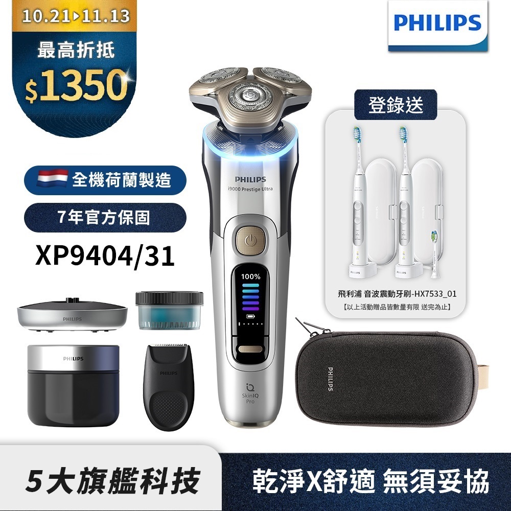 【Philips飛利浦】官方直營 XP9404 31旗艦旋護式AI奢享電鬍刀 刮鬍刀(登錄送【飛利浦】電動牙刷 HX7533 01)