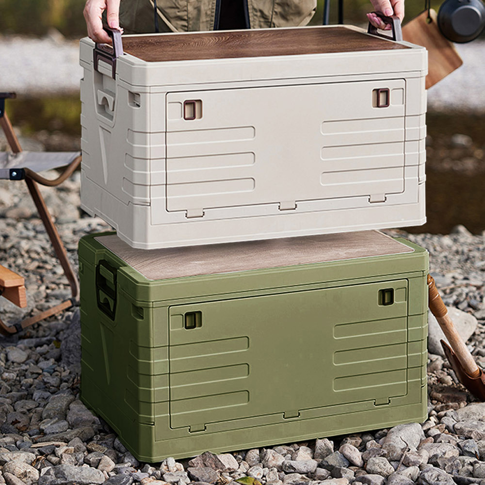 簡介 / | 【AOTTO】68L戶外露營軍規折疊收納桌板收納箱-軍綠色:加厚木板蓋桌子砧板兩用側邊隱藏提手輕鬆提拿搬運軍規加厚材質穩固耐用耐重尺寸:58*39*33cm±3%材質:加厚PP+木板耐重: |