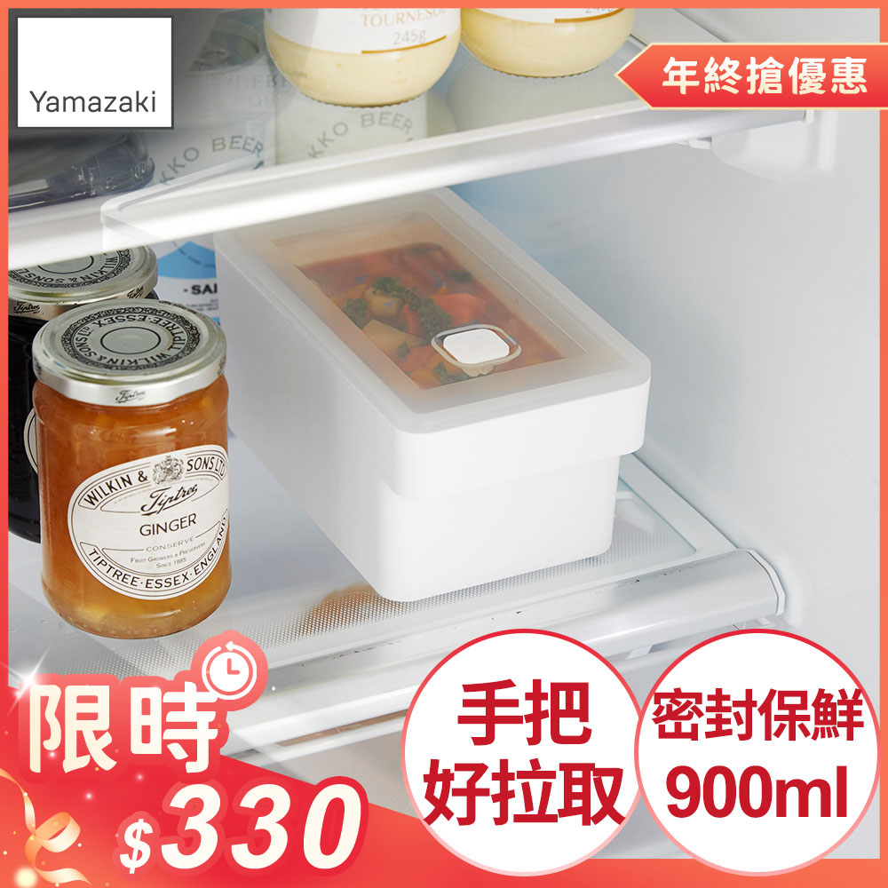 日本【YAMAZAKI】tower手把密封保鮮盒(白)900ml