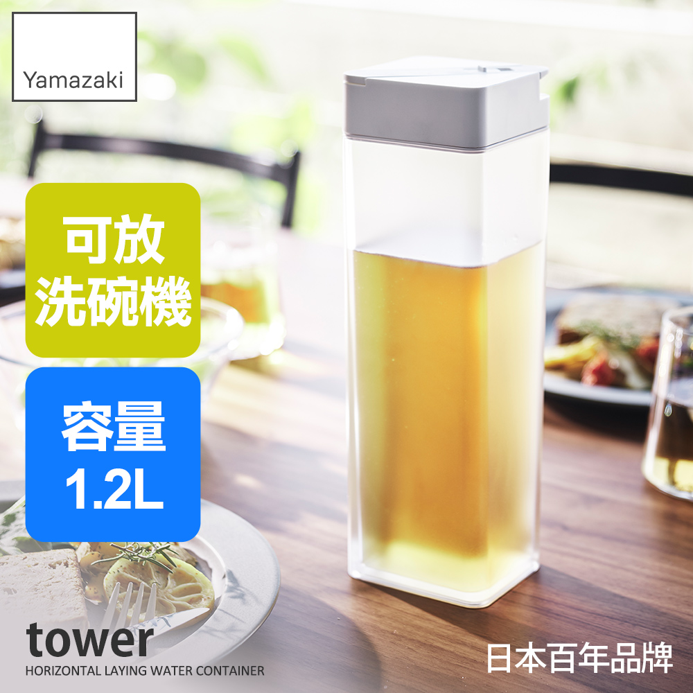 商品描述 | 日本【YAMAZAKI】tower密封防漏冷水壺1.2L(白):★扣鎖式上蓋可單手開啟★可直立/橫躺兩種擺放保存方式★所有配件可拆洗★容量約1.2L★適用於水洗溫度70~80℃的洗碗機★可 |