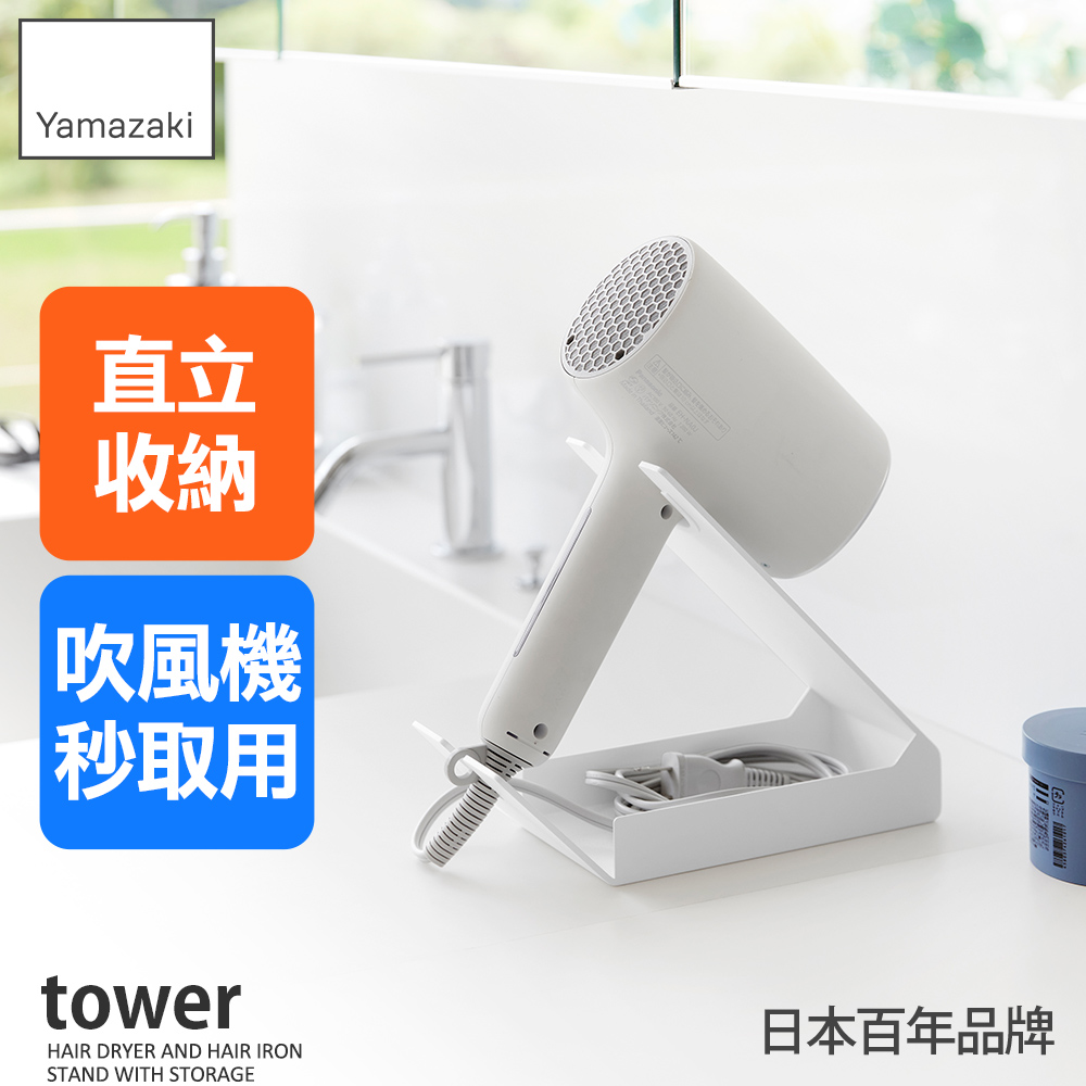日本【YAMAZAKI】tower桌上式吹風機收納架(白)