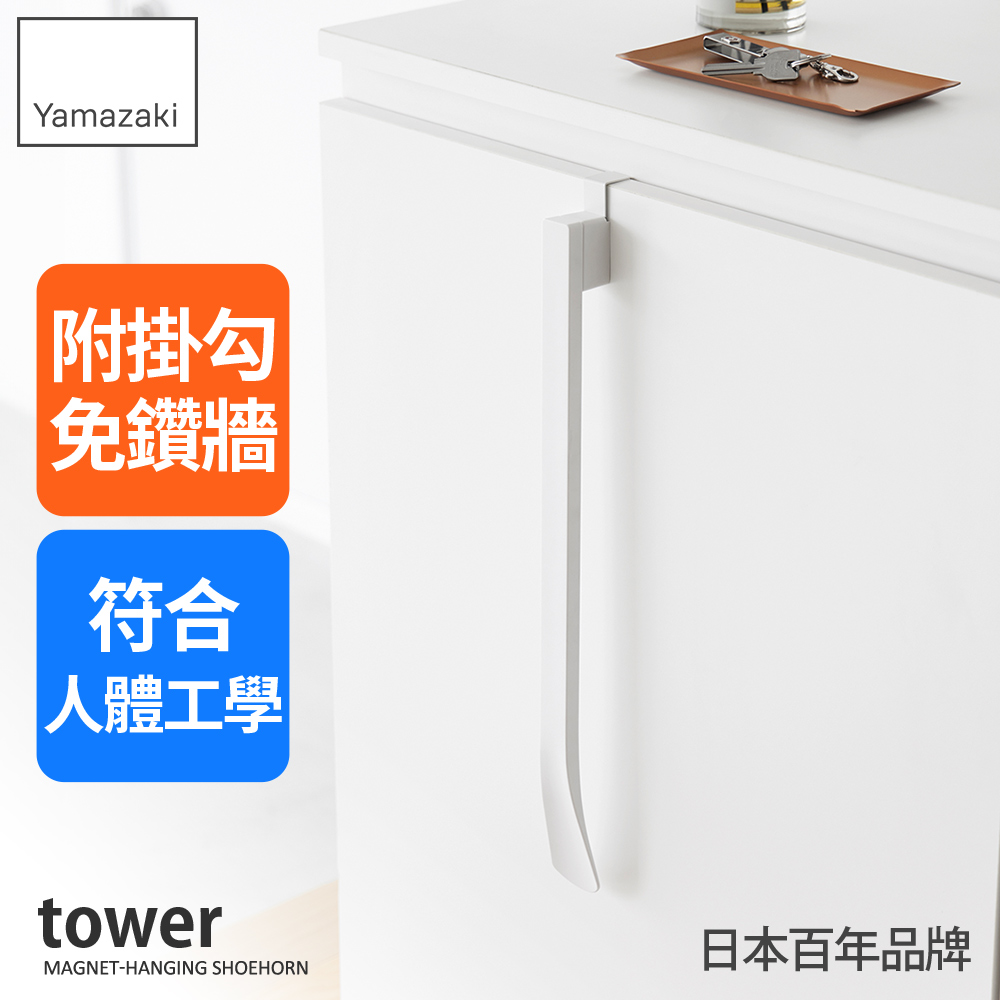 商品描述 | 日本【YAMAZAKI】tower可掛式磁吸鞋拔(白):★只需將掛勾夾在鞋櫃門上無需鑽孔即可安裝★鞋拔握把內嵌磁鐵,可穩固吸附於掛勾上★符合人體工學長度,使用舒適★可掛式可自 |