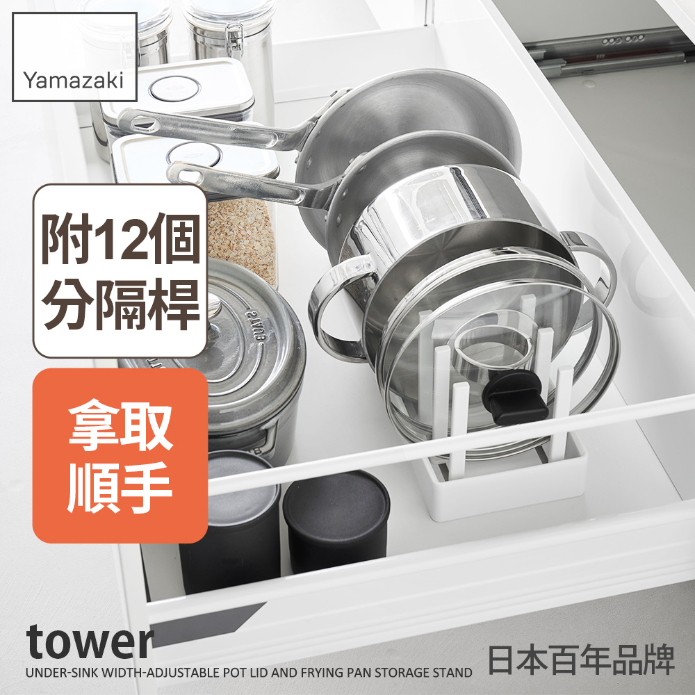 商品名 / | 日本【YAMAZAKI】tower可調式餐盤鍋蓋架-40cm(白) |